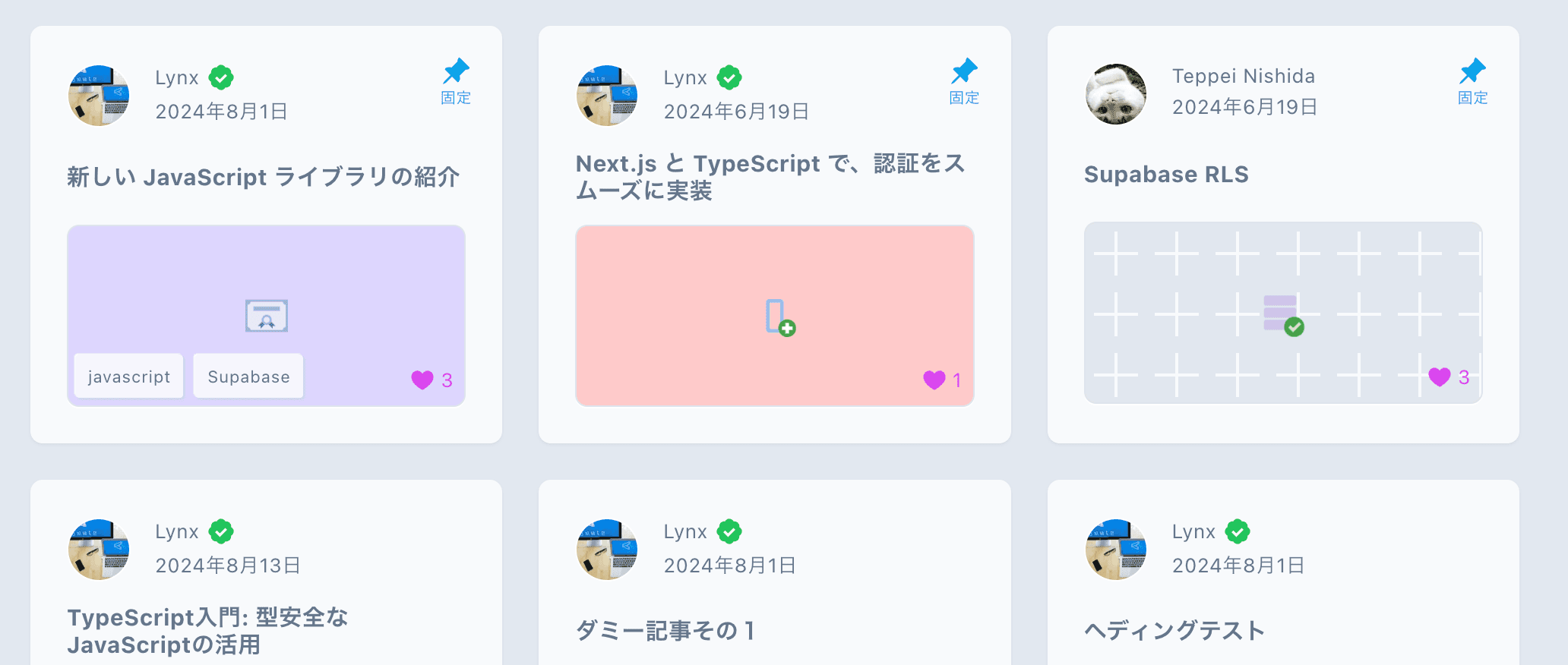 チームメンバーの記事一覧が表示され、チームブログ一覧の先頭にピン留めすることができます。