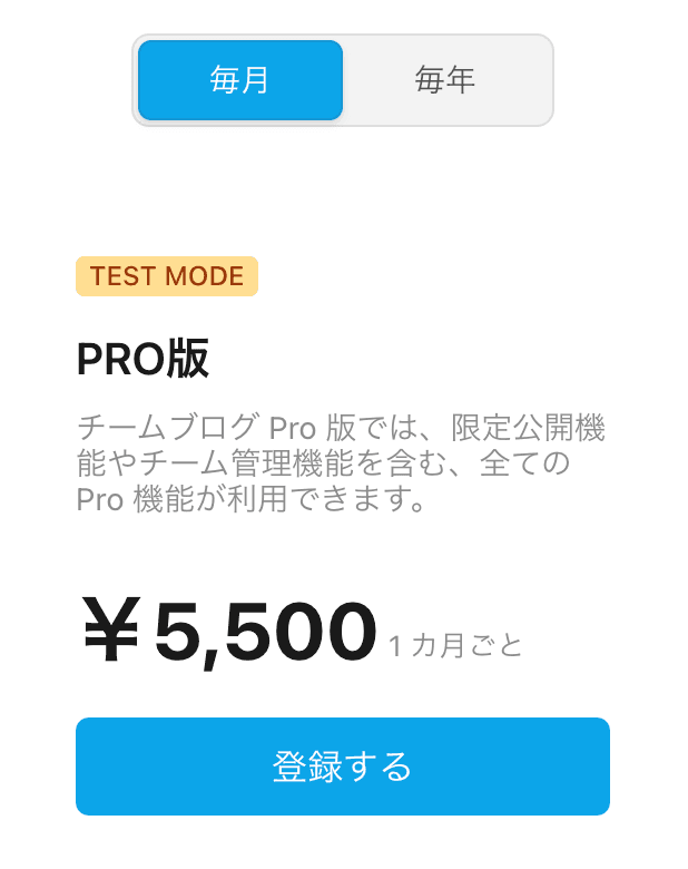 PRO版は、チームブログの認定を受けた組織のみご利用可能です。管理者用の管理画面から登録できます。料金は以下の通りです。