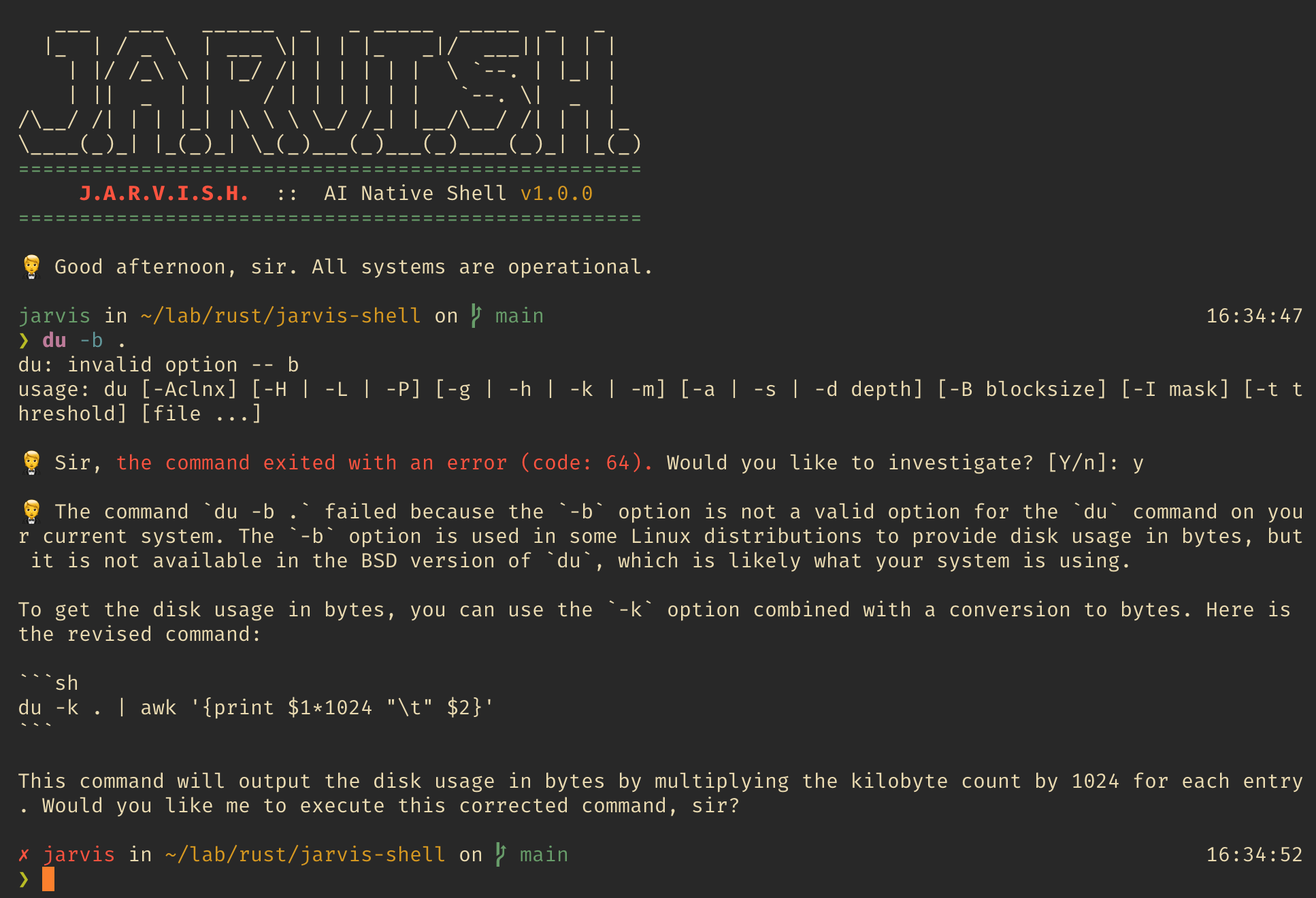 Jarvish のアプローチは違います。シェルそのものに AI を統合することで、コマンド実行と AI の対話がひとつの REPL ループの中で完結します。