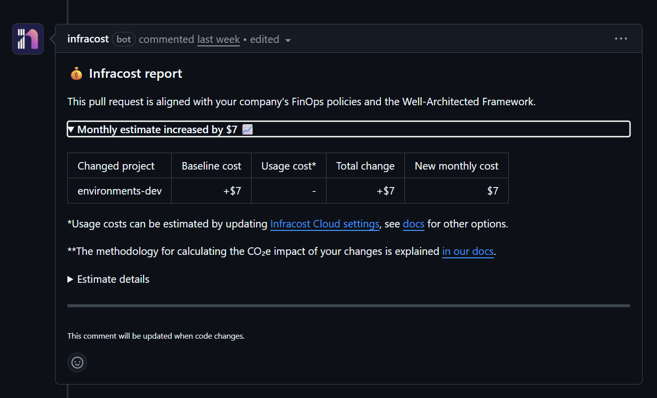 本パイプラインでは Infracost は CI には組み込んでいないが、 これは不要だからではなく、 GitHub Apps としてのセットアップが非常に簡単だったためだ。