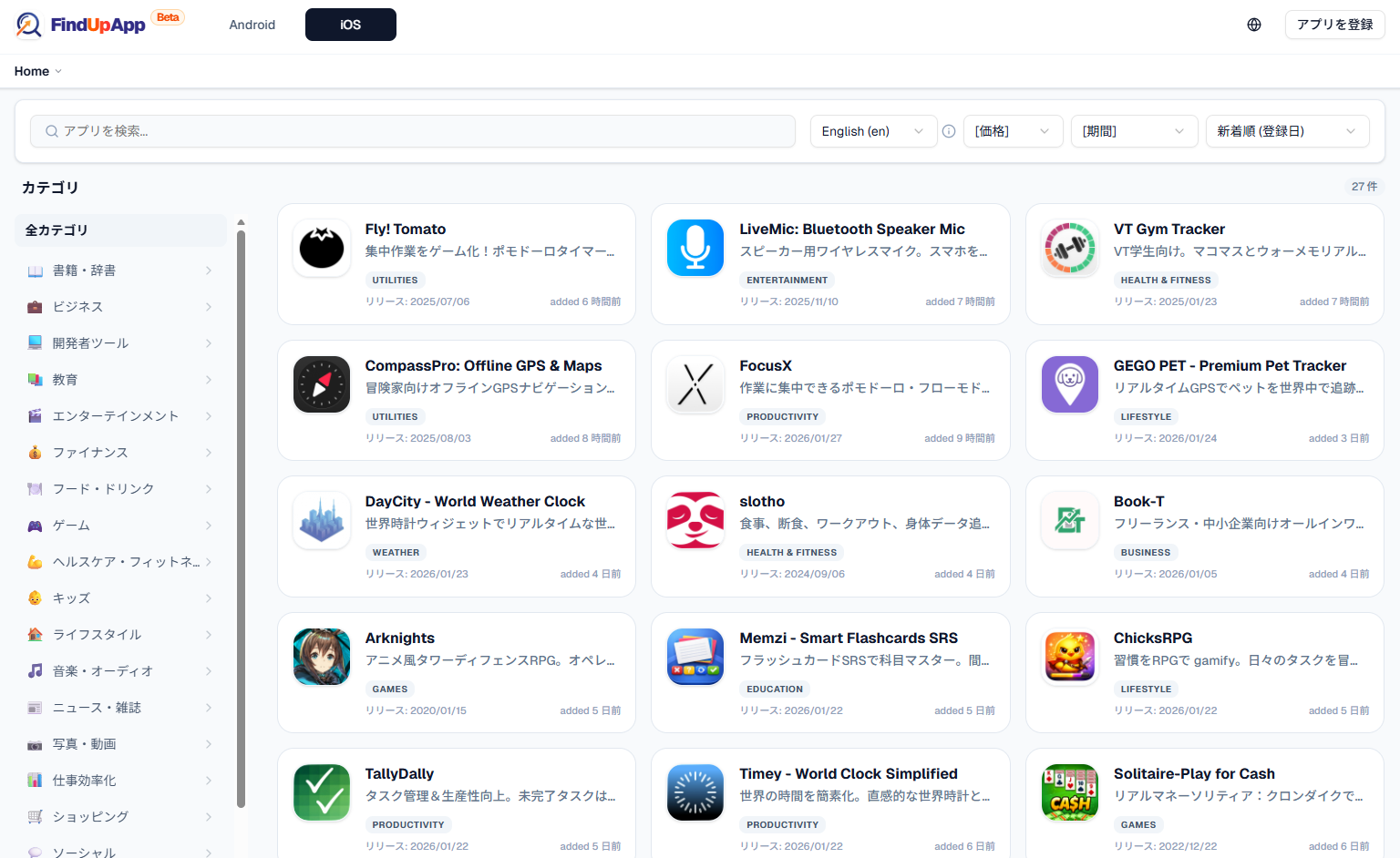 公式ストアの不便な「階層のないカテゴリ」を整理し直した、モバイルアプリ専用のディスカバリー・エンジンです。