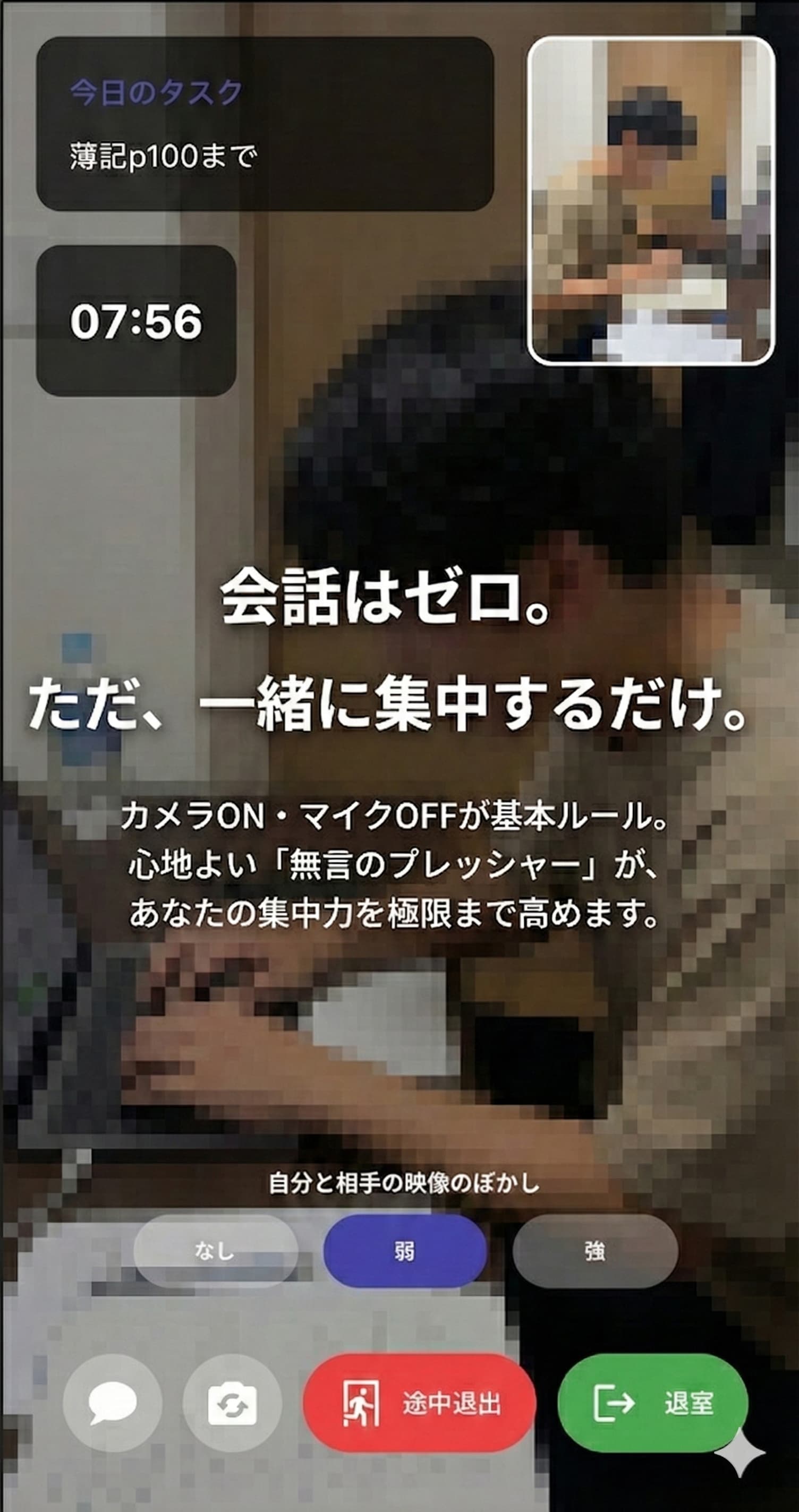 意思の力だけに頼る必要はありません。「mokumoku」は、同じ時間に頑カフェで作業したいけれど、移動時間や1回500円以上の出費がもったいない。張る誰かと「作業通話」でつながるだけ。ピアプレッシャー(見られている緊張感)が、あなたの集中力を自然と引き出します。