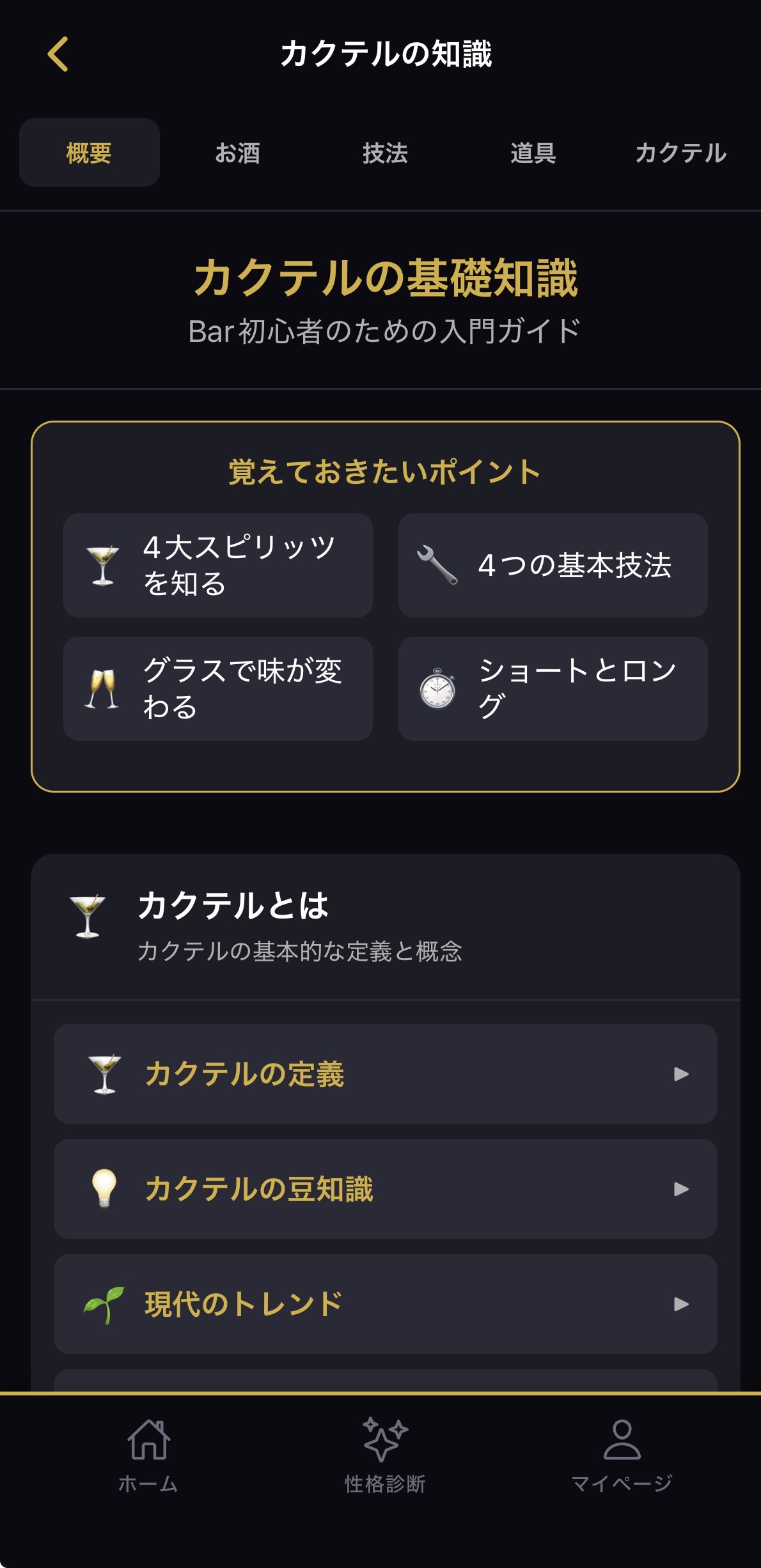 | カクテルの基礎 | カクテルの定義、歴史、分類 |