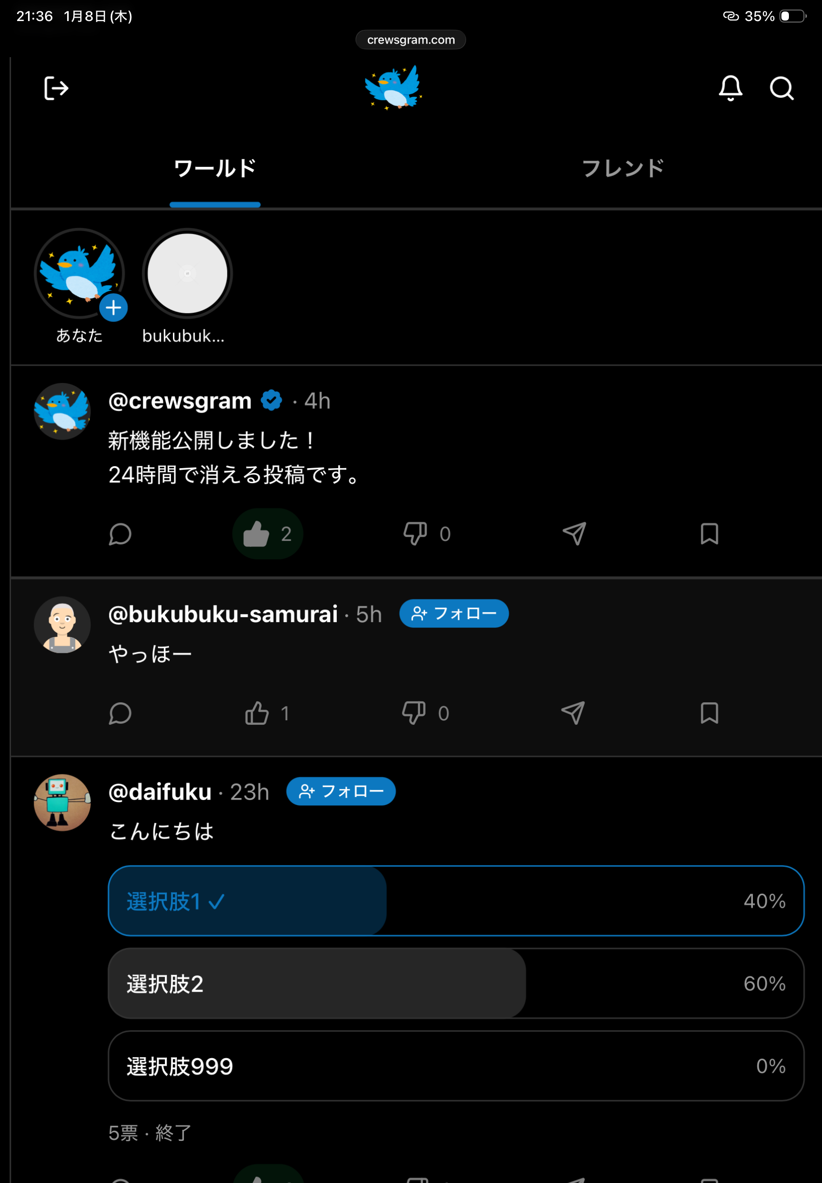 X/TwitterライクなSNSです。最低限しか機能はないですが、Xと違ってシンプルさがあります。その上、国産のSNSとして成長したいので是非、ご参加よろしくお願いします‼︎