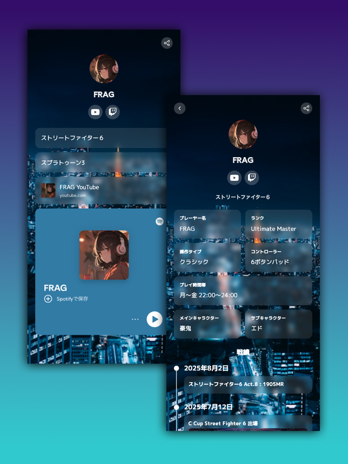 FRAGは、ゲーマー、VTuber、ストリーマー向けのプロフィールページ作成サービスです。
