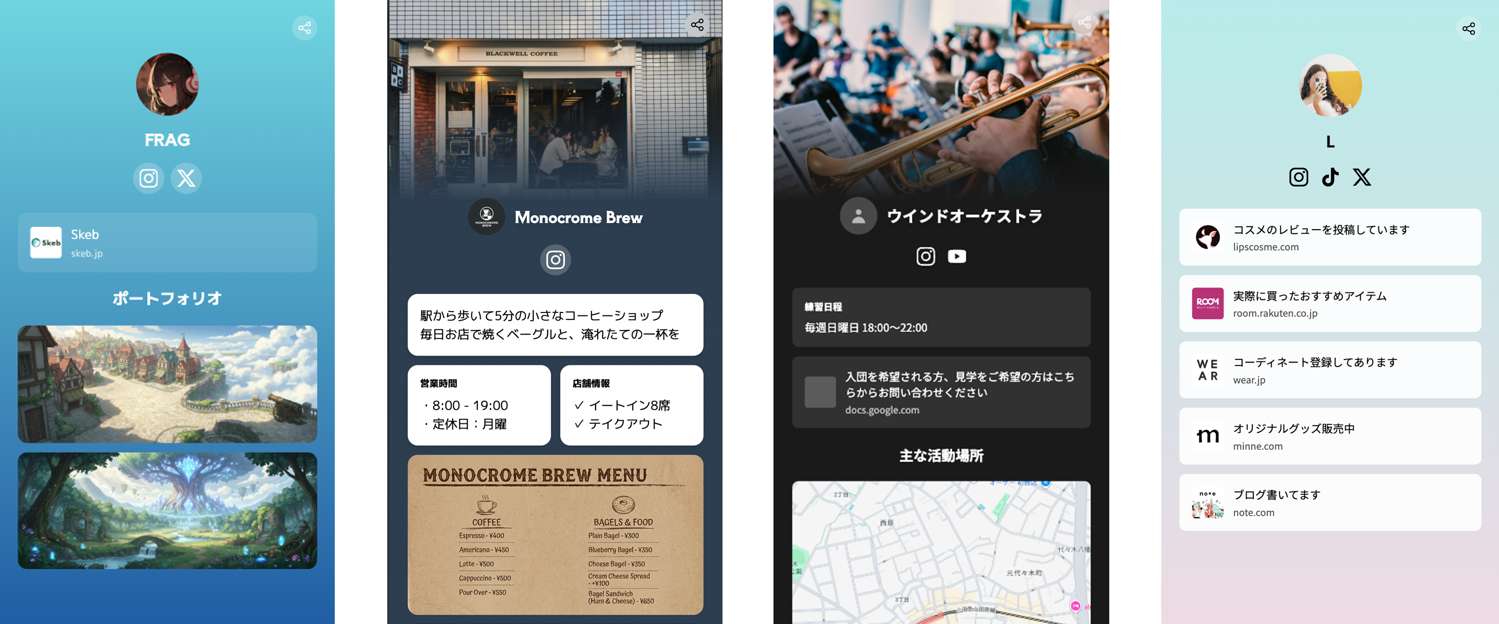 - インフルエンサーのLink in bioとして