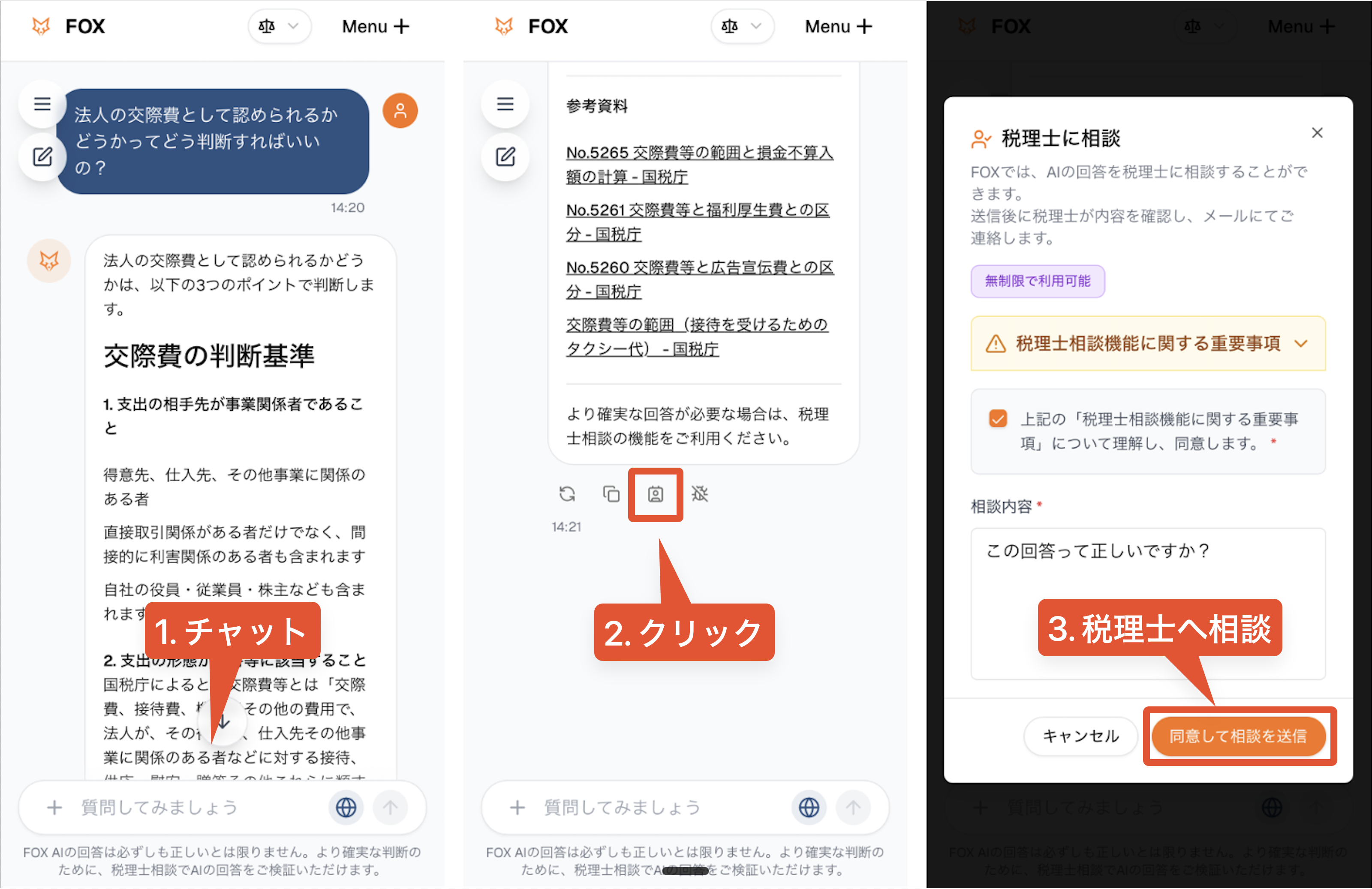 FOXのAIは、複数名の税理士が回答精度を監修しています。