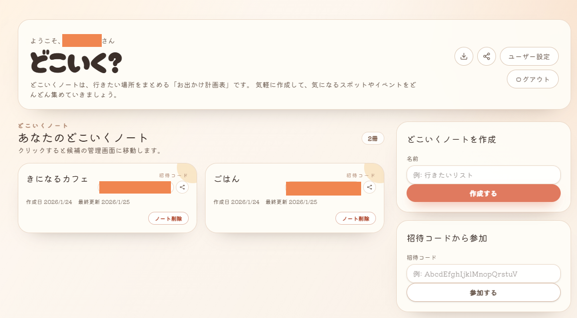 ①どこいくノート - 候補地を自分の分けたい単位でまとめれるワークスペース機能