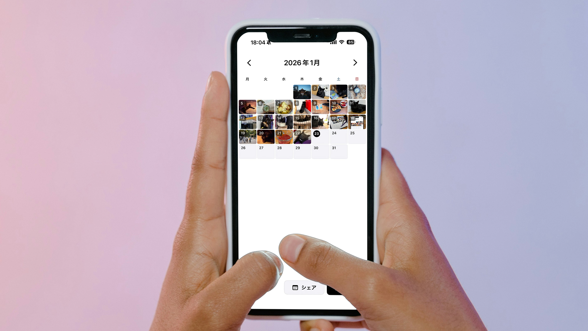 1ヶ月分の写真をカレンダー画像として書き出すこともできます。InstagramやXで「今月の振り返り」として投稿すれば、友人や家族と思い出を共有できます。