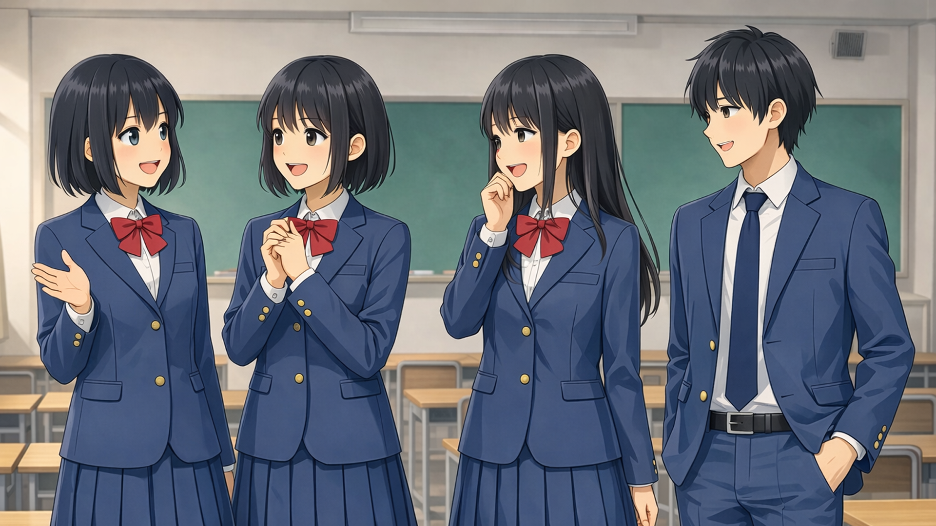 髪の色、制服、私服、学校や帰り道の空気、日常生活、コミュニケーションの間合い、など、細部を現実に近づけて、「昔こんな感じだったな」と思える雰囲気を作っています。