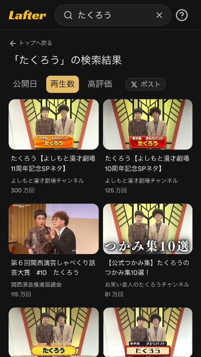 YouTubeには面白いネタ動画が数多く存在していますが、無断転載も少なくありません。そこで、お笑い芸人や劇場など公式チャンネルが投稿している漫才・コント・ピンネタなどの「ネタ本編」を中心に、安心して探せるよう整理・検索できるまとめサービス『Lafter(ラフター)』を作りました。