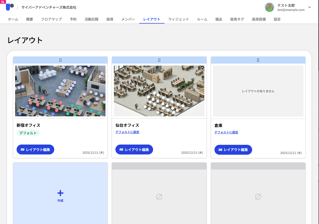 一つのフロアに複数のレイアウトを紐づけることが可能です。