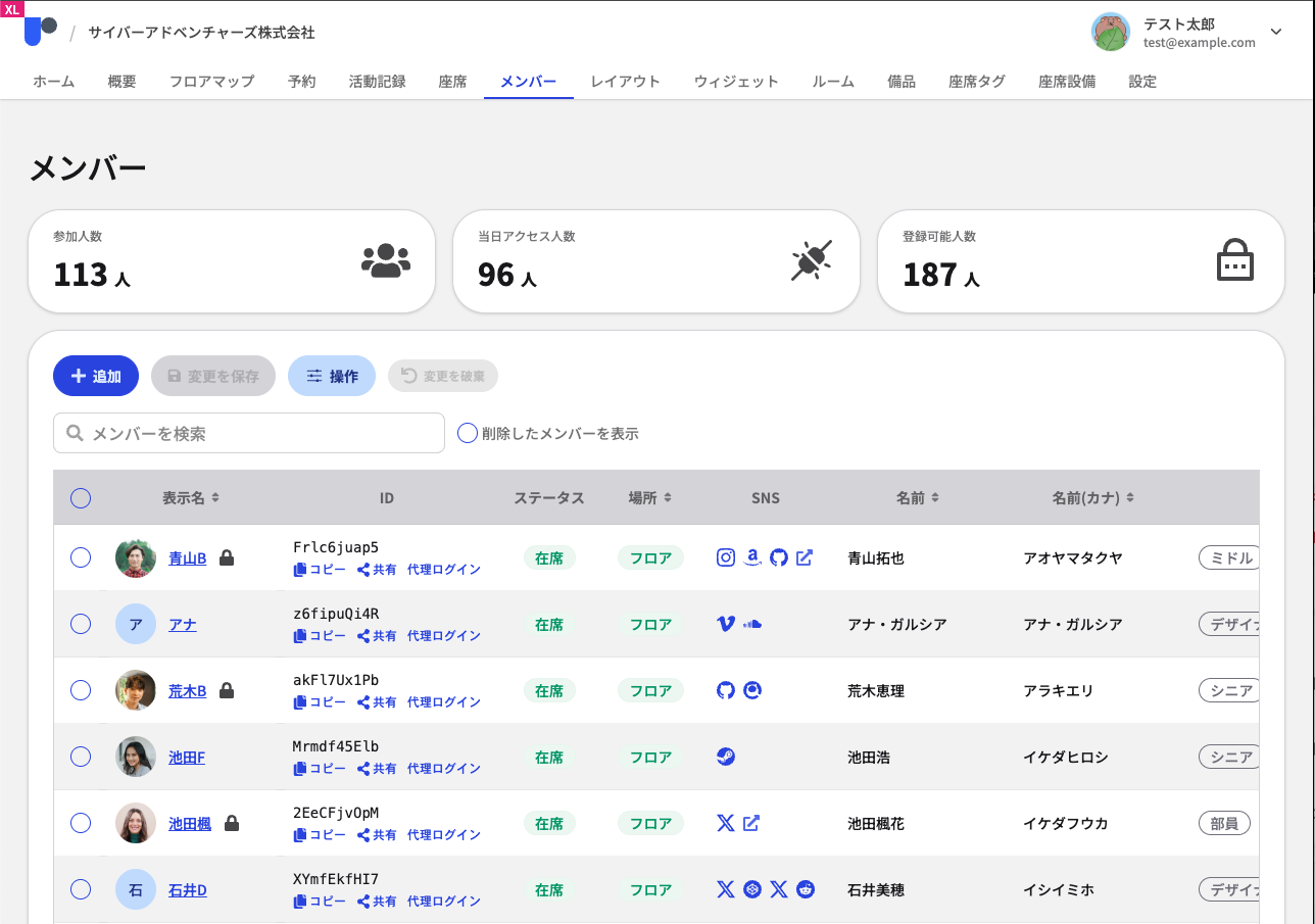 API機能を用いて、メンバーを外部システムから取り込んだり、出力することが可能です。